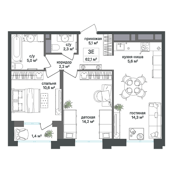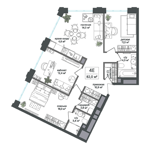 Здесь же расположены кладовки для сезонных вещей, спортинвентаря и всего, что важно хранить под рукой, но не в квартире.