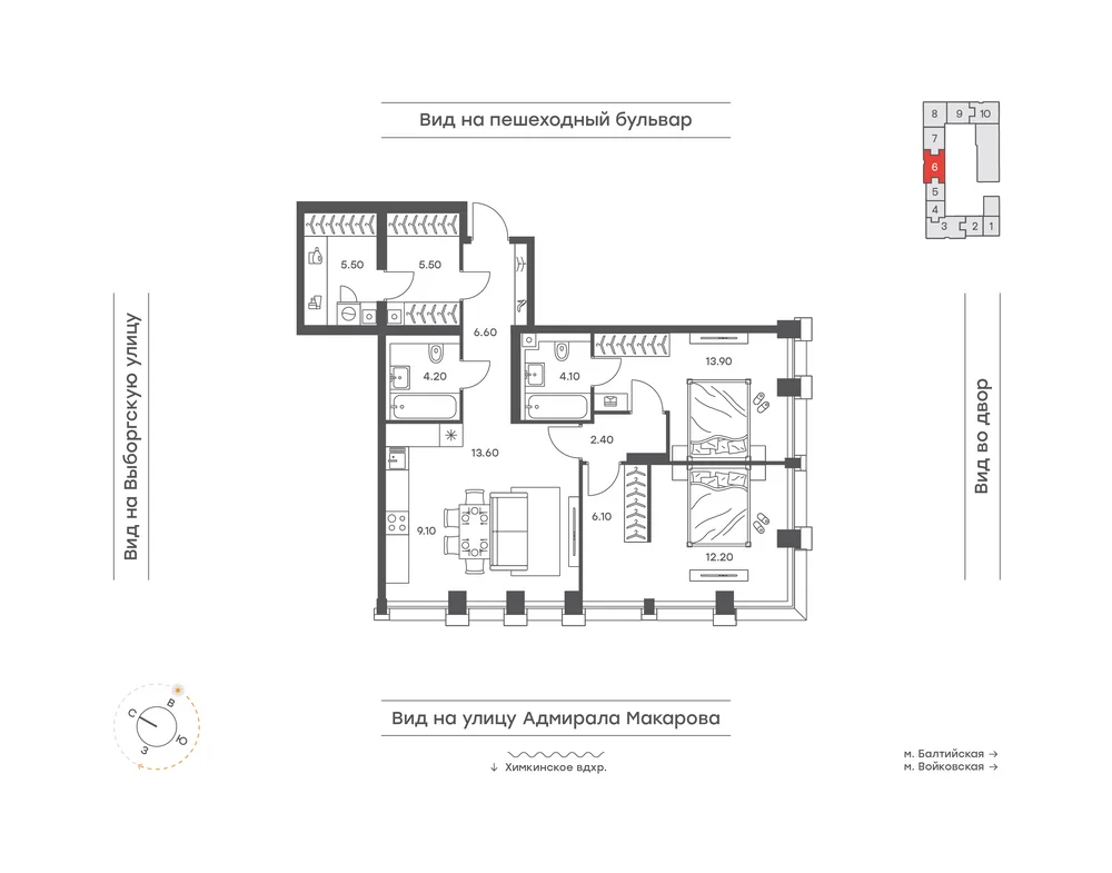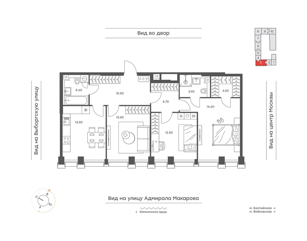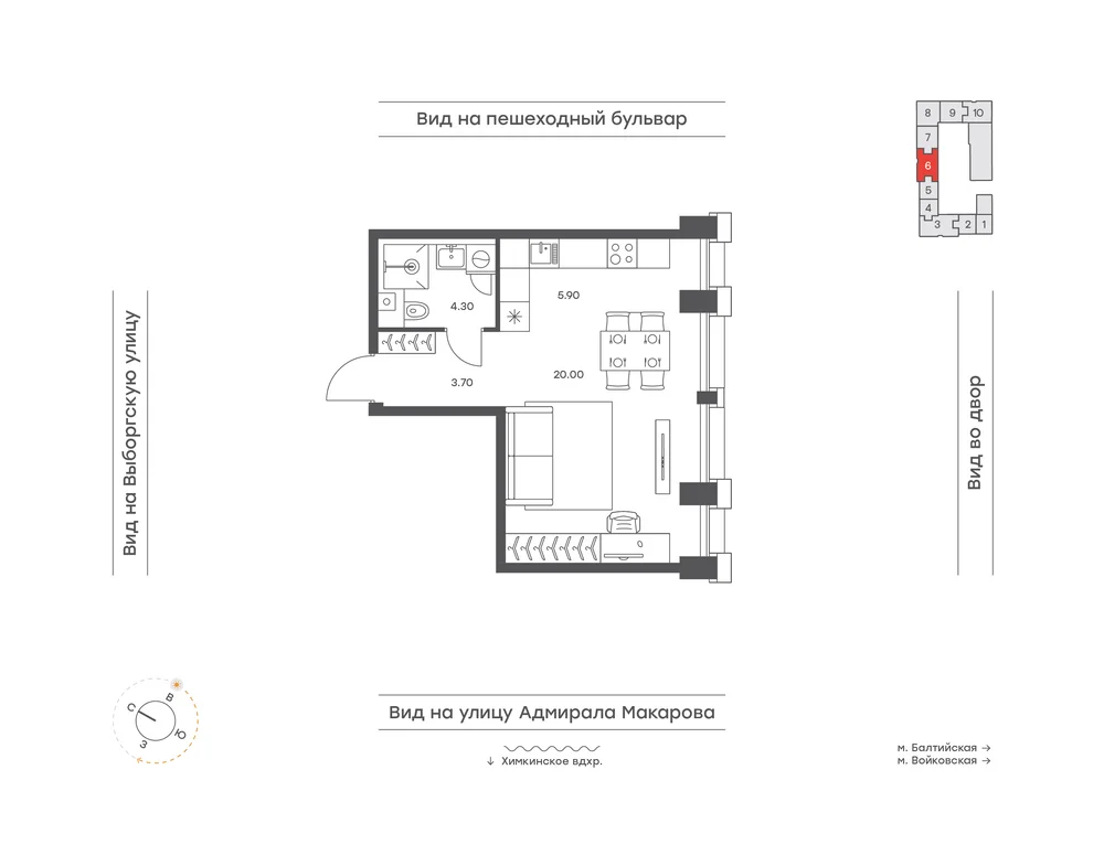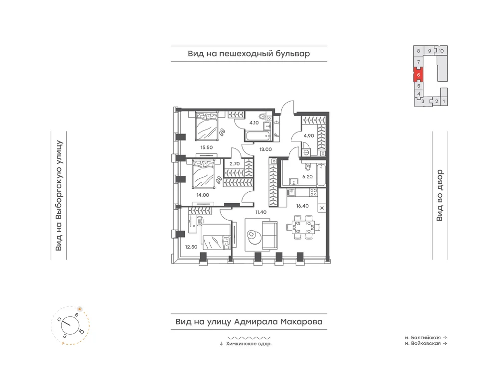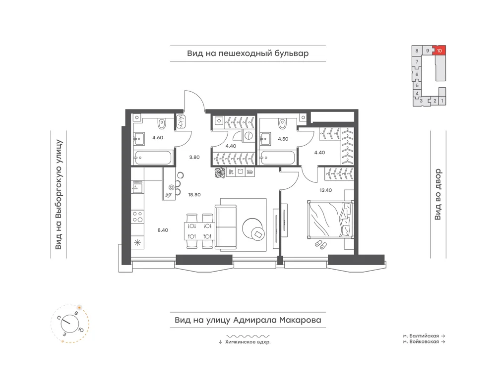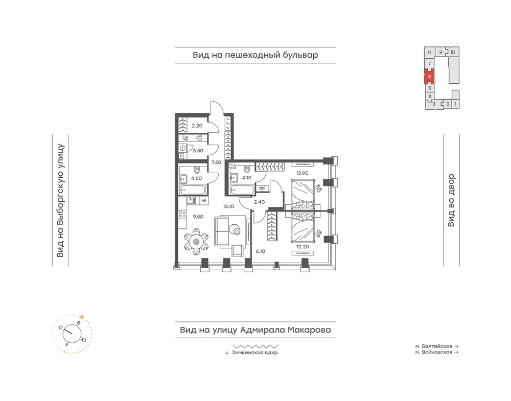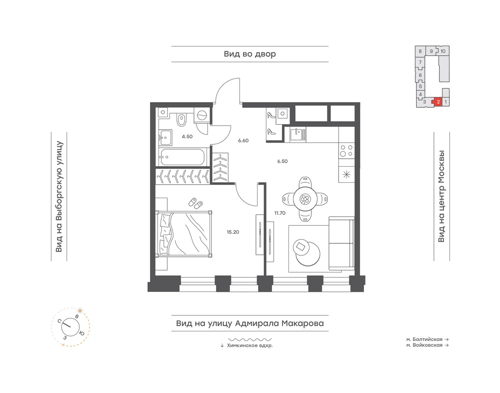Квартал защищён от шума магистралей исторической застройкой и при этом имеет удобный выезд на Ленинградское шоссе.