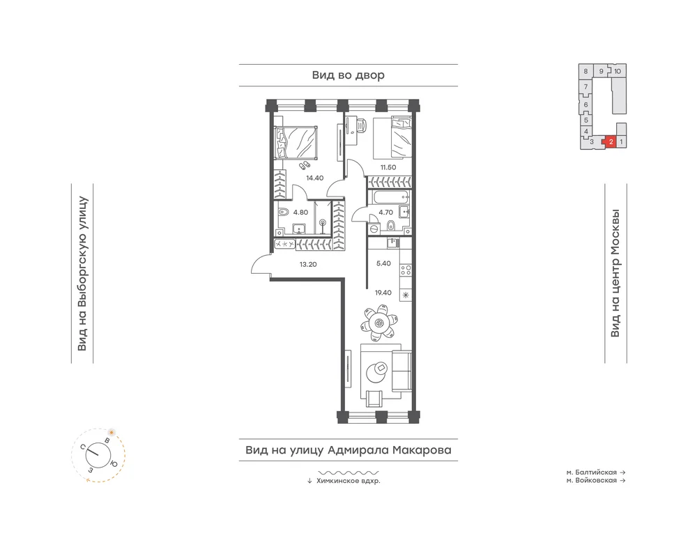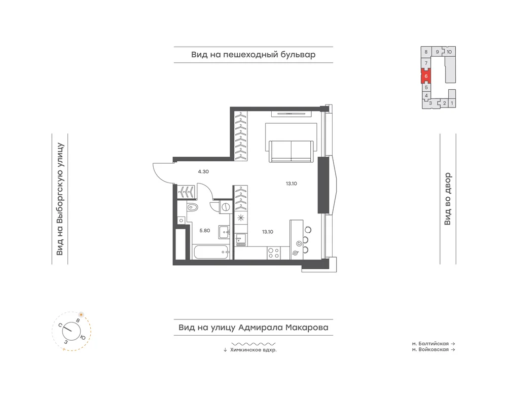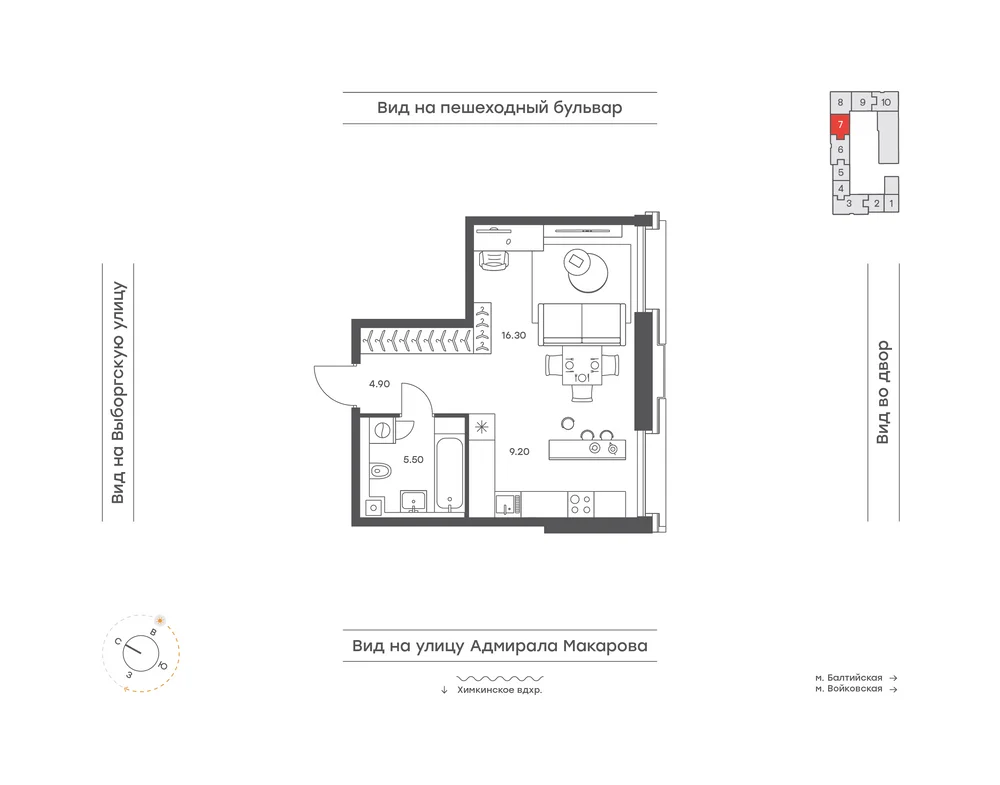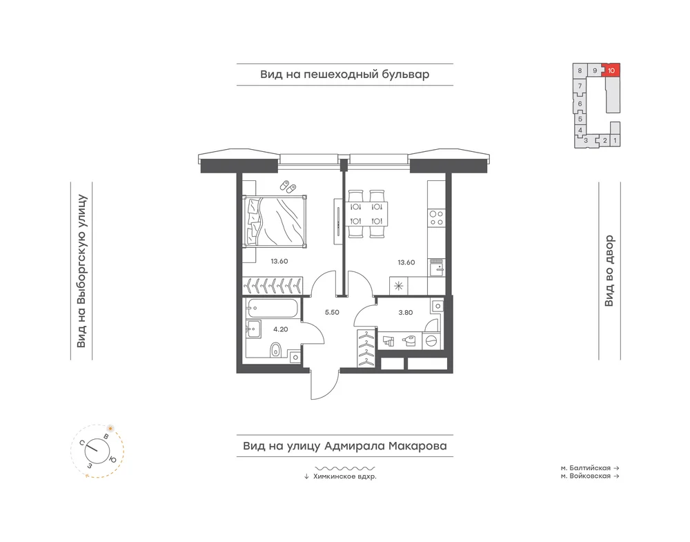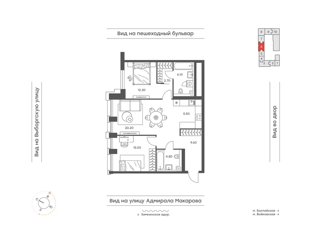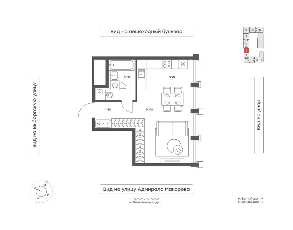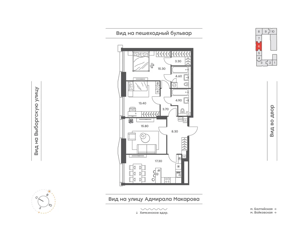 Квартал защищён от шума магистралей исторической застройкой и при этом имеет удобный выезд на Ленинградское шоссе.