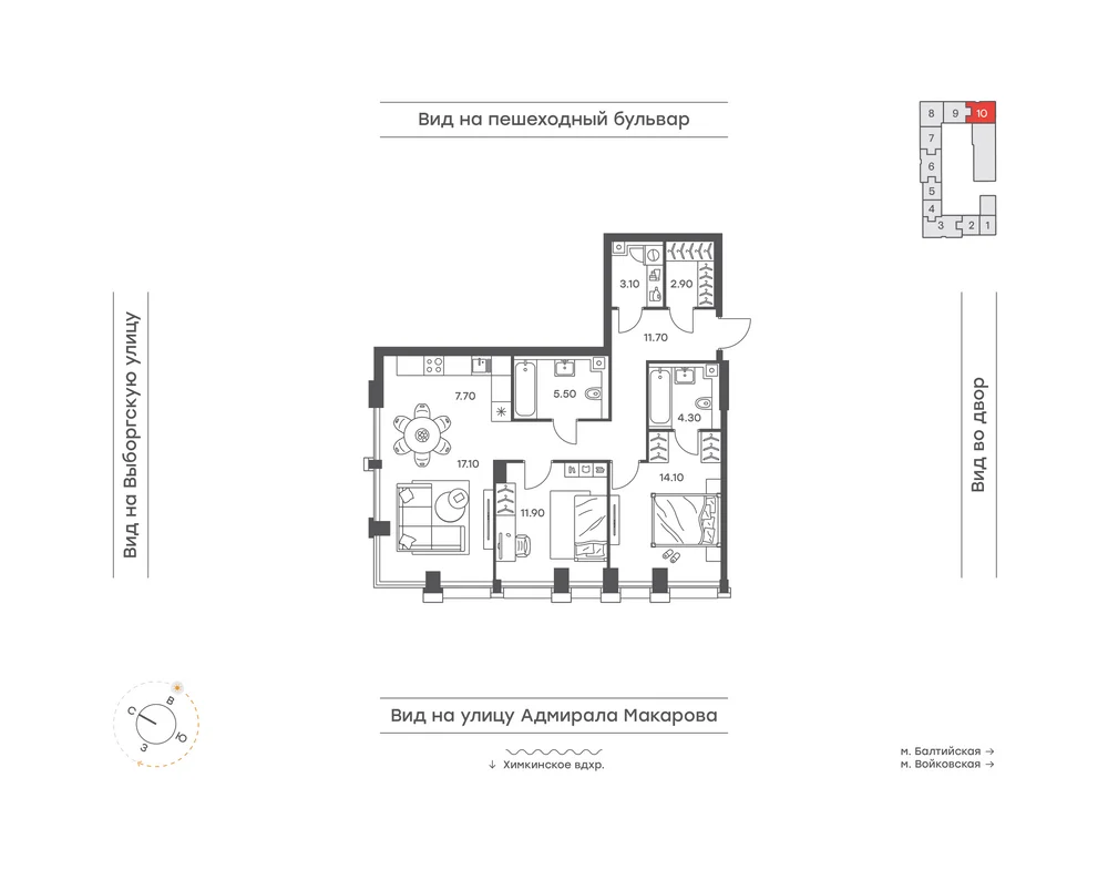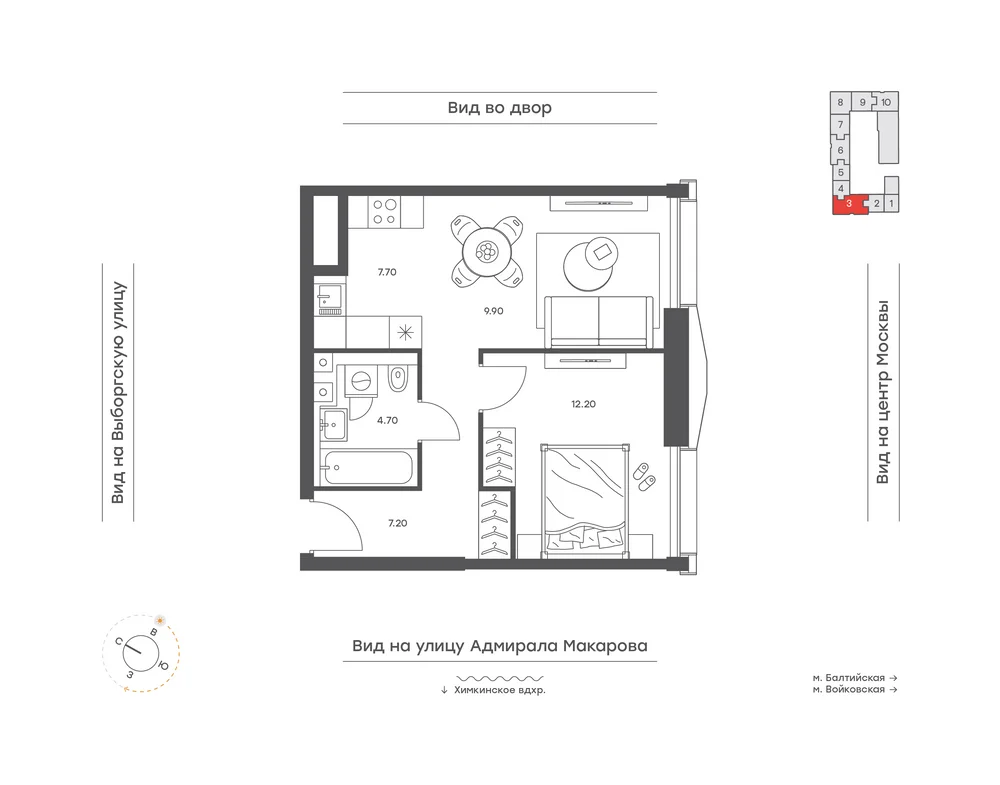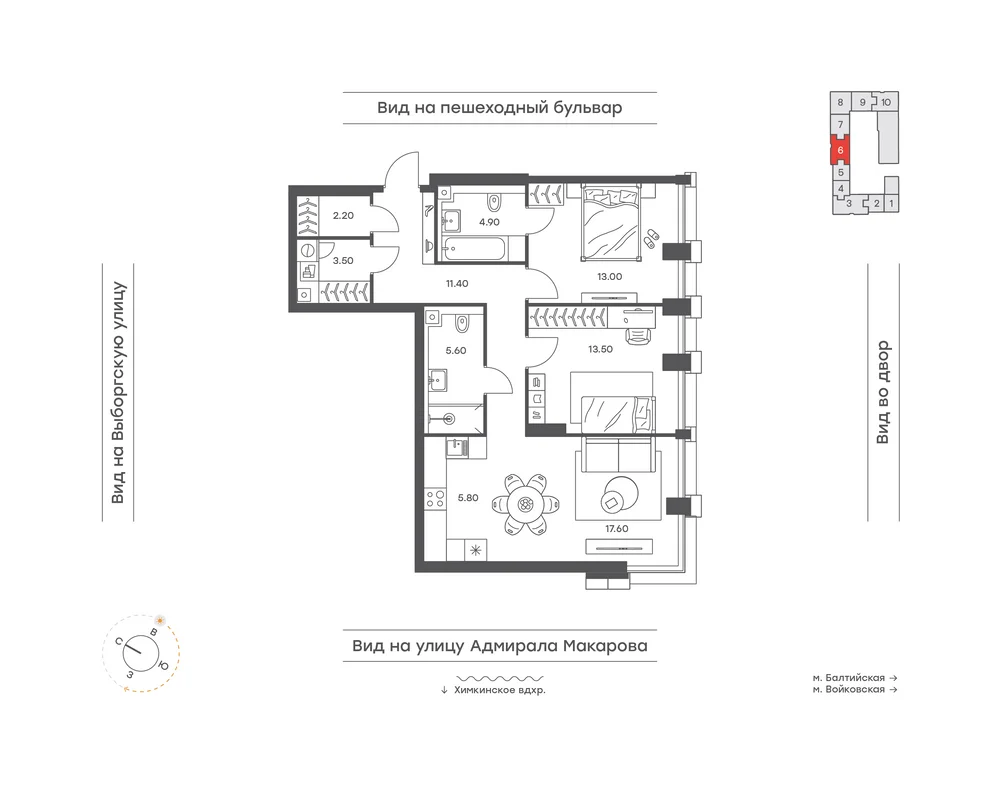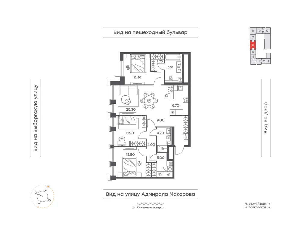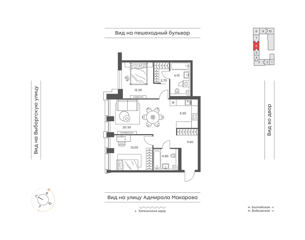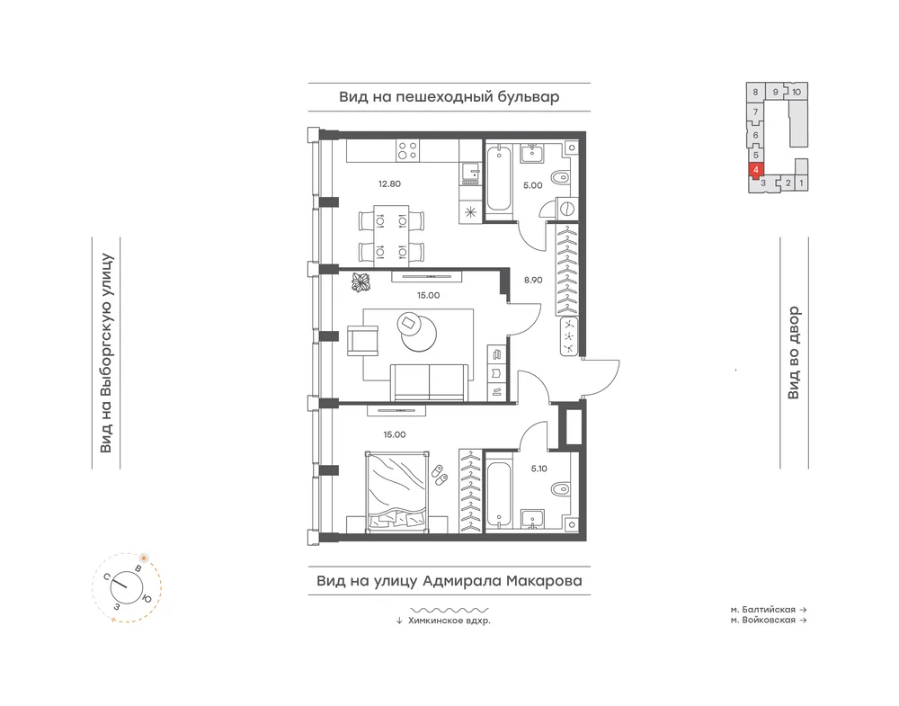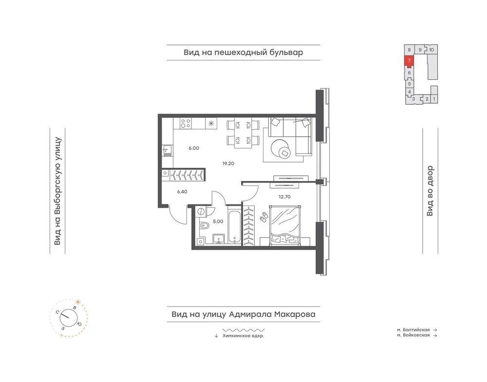 Квартал защищён от шума магистралей исторической застройкой и при этом имеет удобный выезд на Ленинградское шоссе.