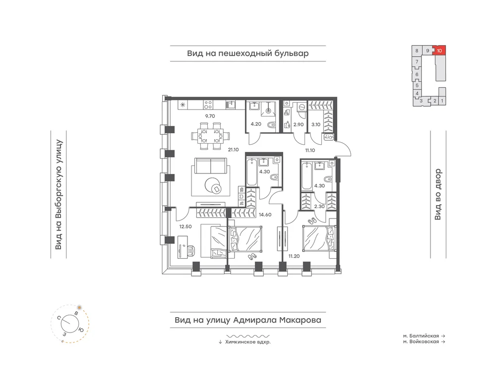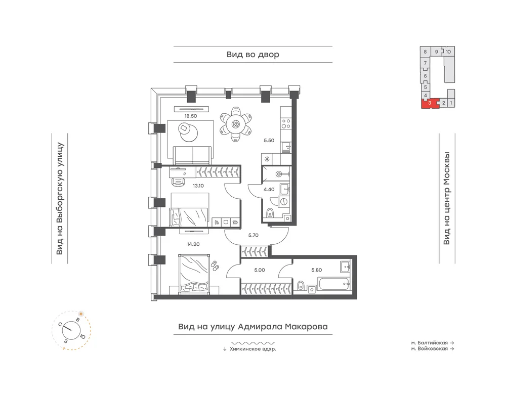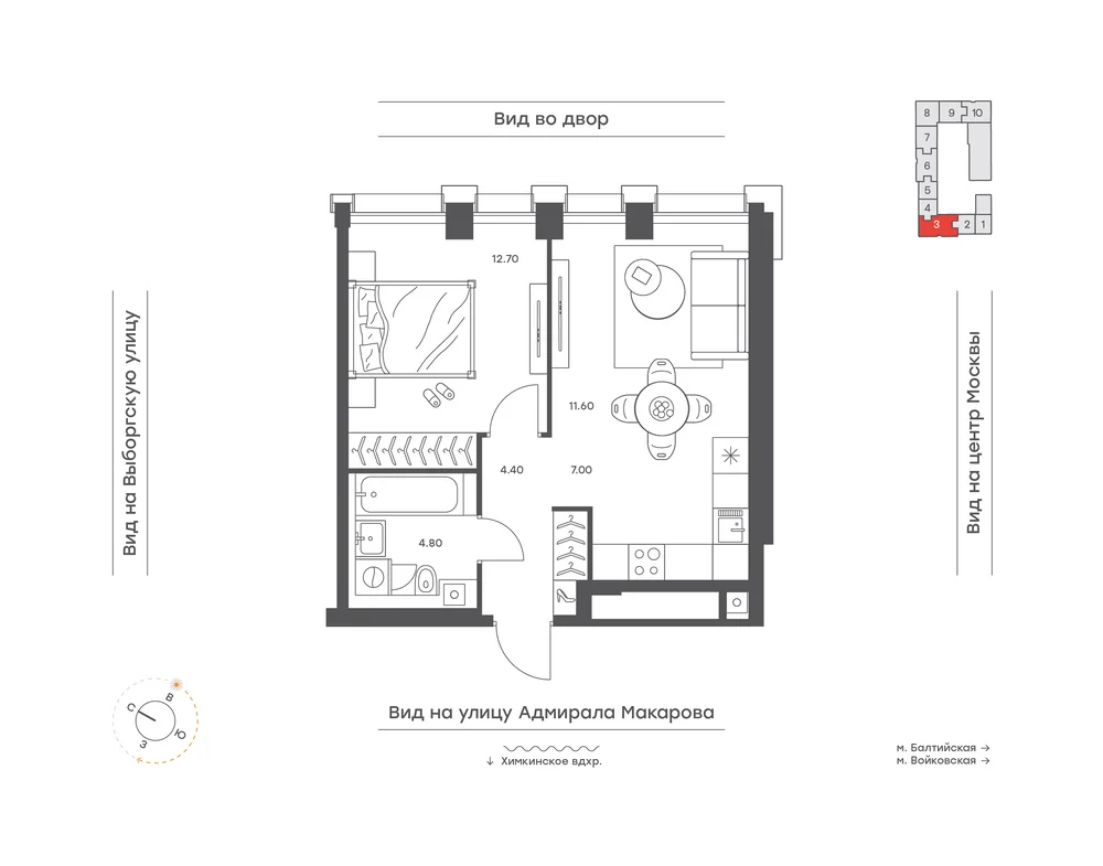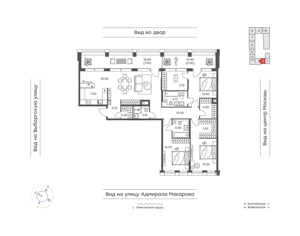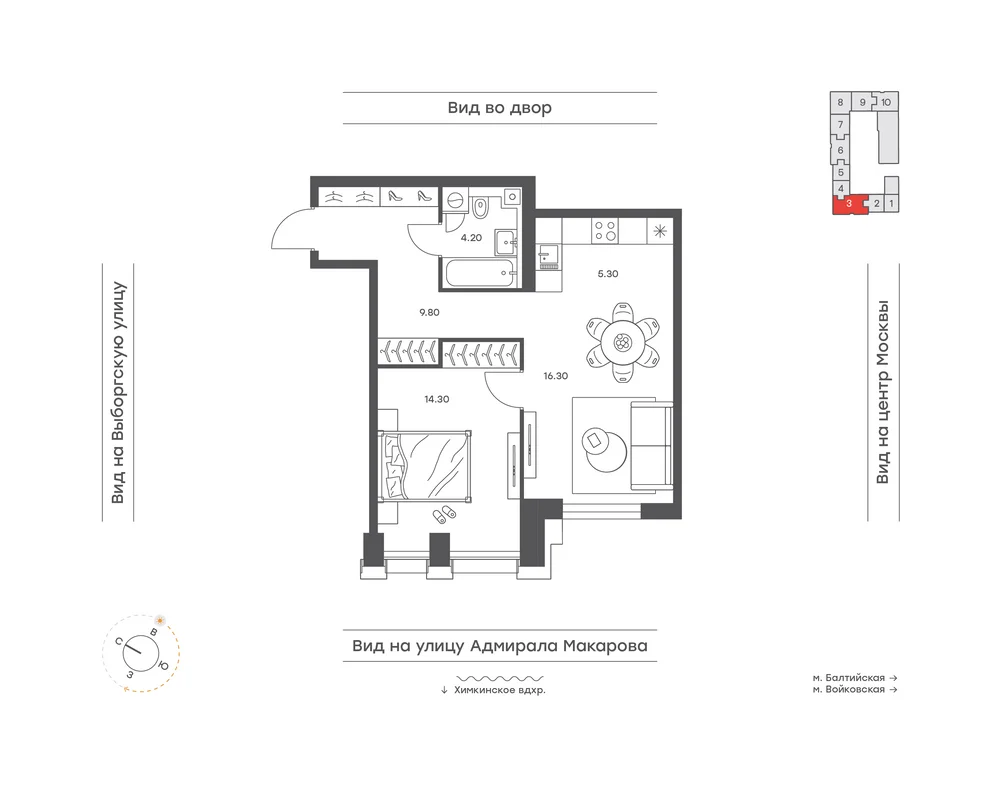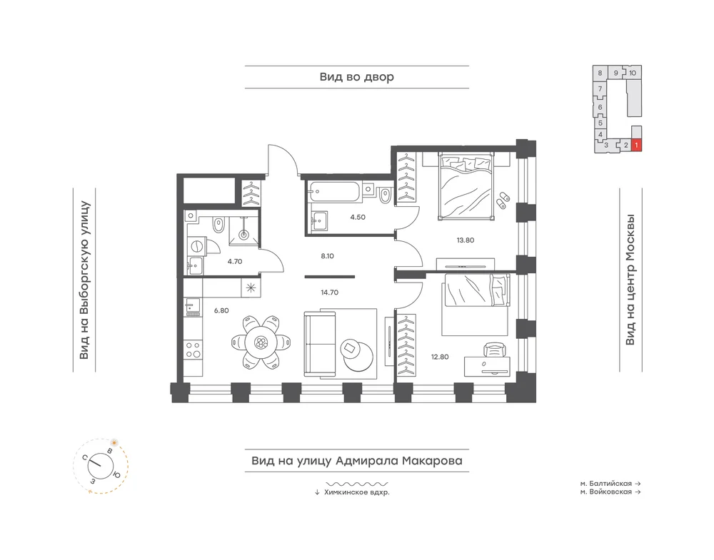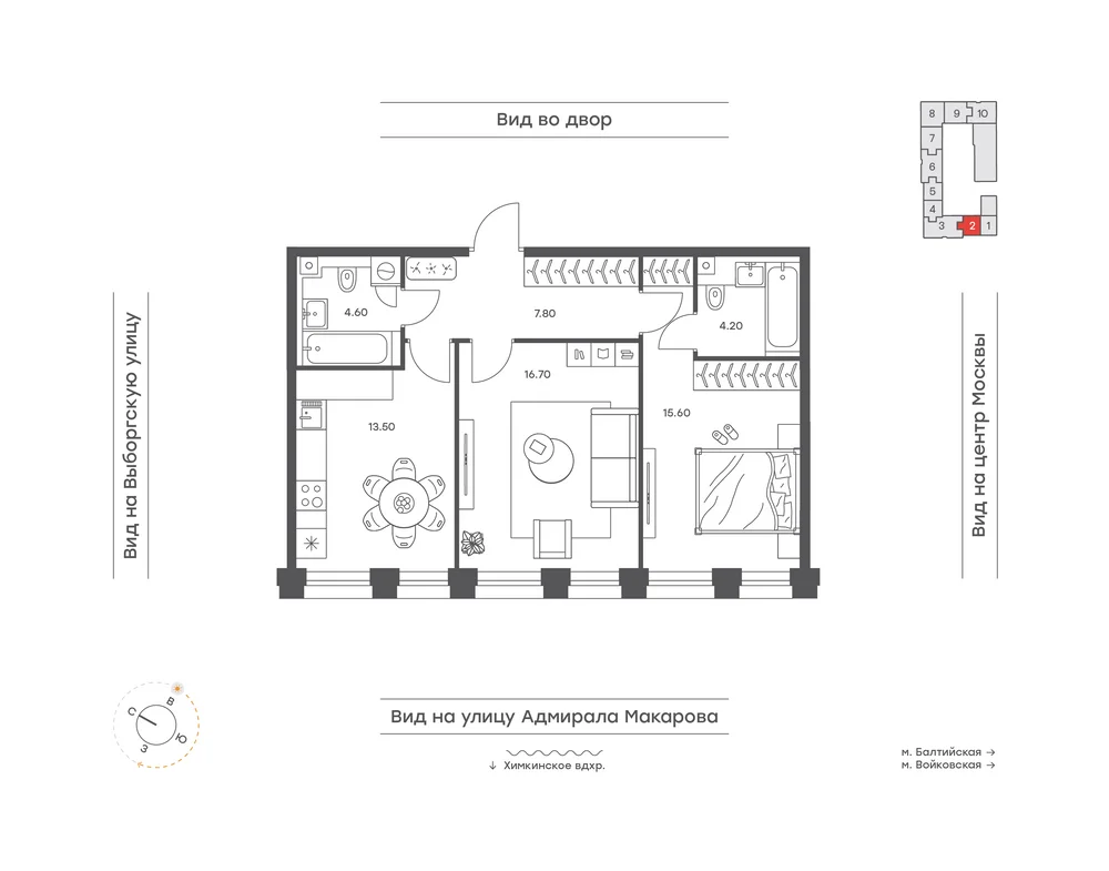 Окна от пола до потолка открывают панорамы на Химкинское водохранилище, канал им. Москвы, парк Покровское- Стрешнево и Москва-Сити.
