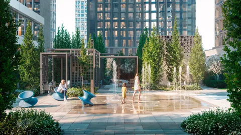 Есть отдельные зоны для малышей, амфитеатры у воды, павильоны для игр, теннисные корты и дорожки для самокатов, которые плавно соединяются с променадом, имеют прямой выход к фонтанам, набережной и к парку.